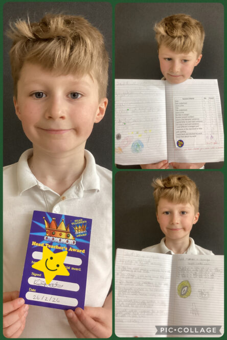 He has been working incredibly hard to improve his handwriting, showing real determination and care in everything he does. It has been wonderful to see the effort he has put in, both at school and he has been working incredibly hard at home.
