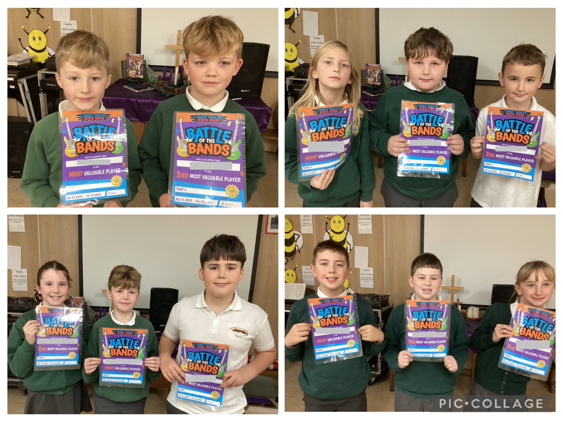 Week five winners are: 1st – Year 4 2nd – Year 5 3rd – Year 3 4th – Year 6 Pictured are the most valuable players for week five, gaining the most points for their teams. Bendigedig!