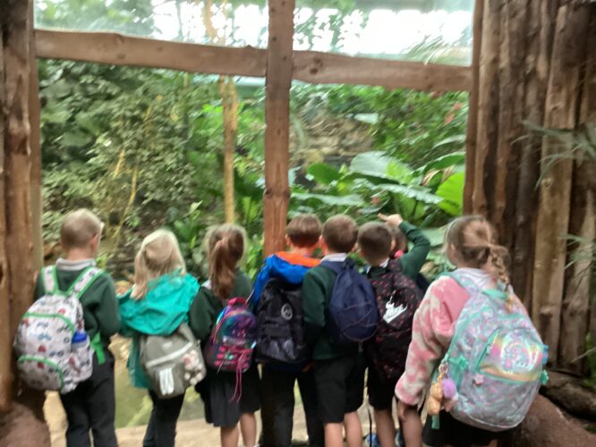 I think we have some very tired children! Year 1 and 2 found out about different habitats and we looked at some animal skulls. Year 3 learned about Rainforests and how important they are.