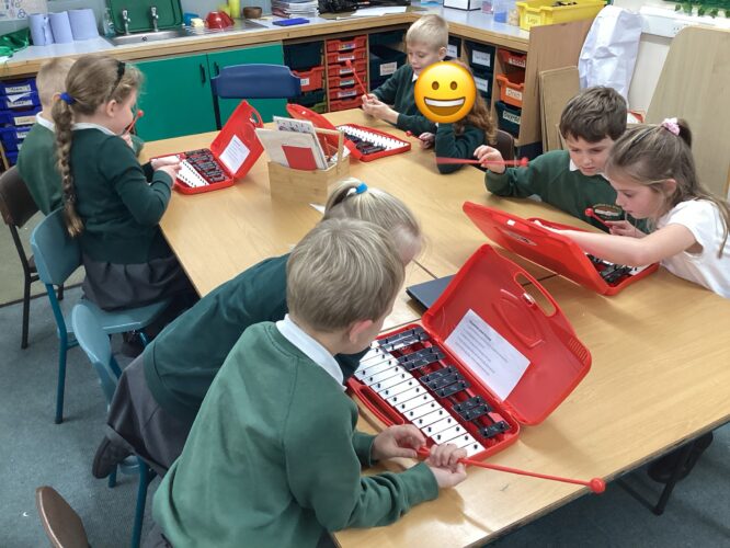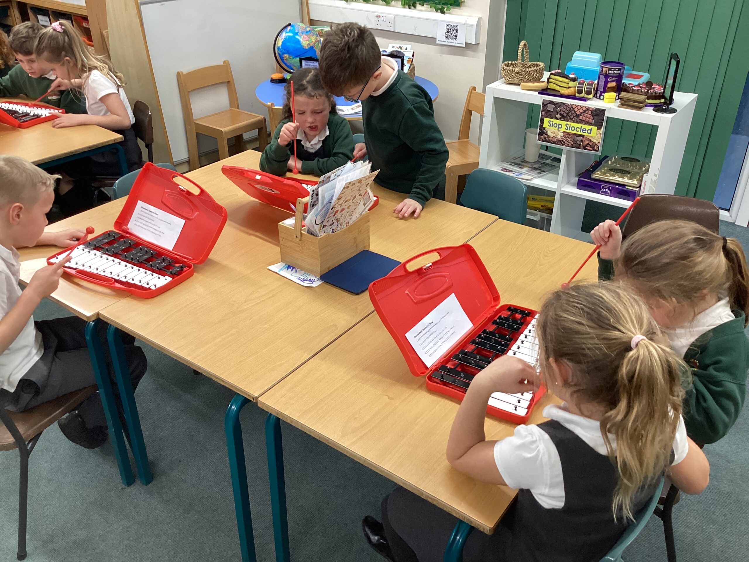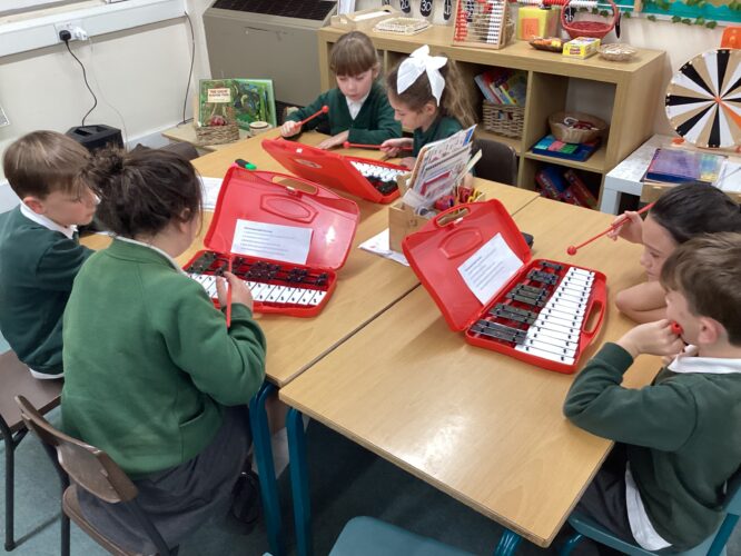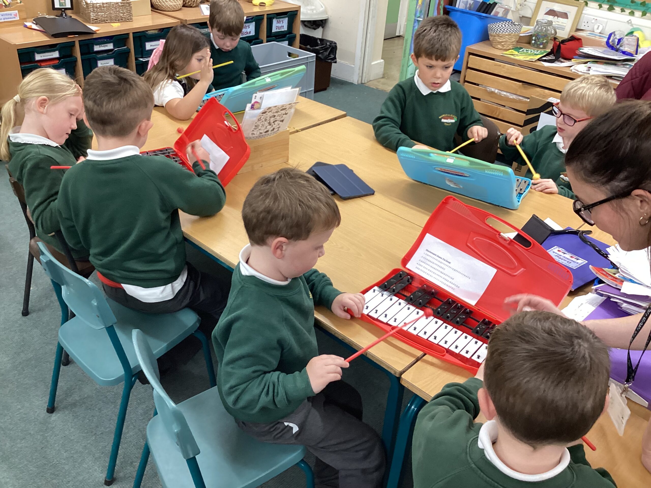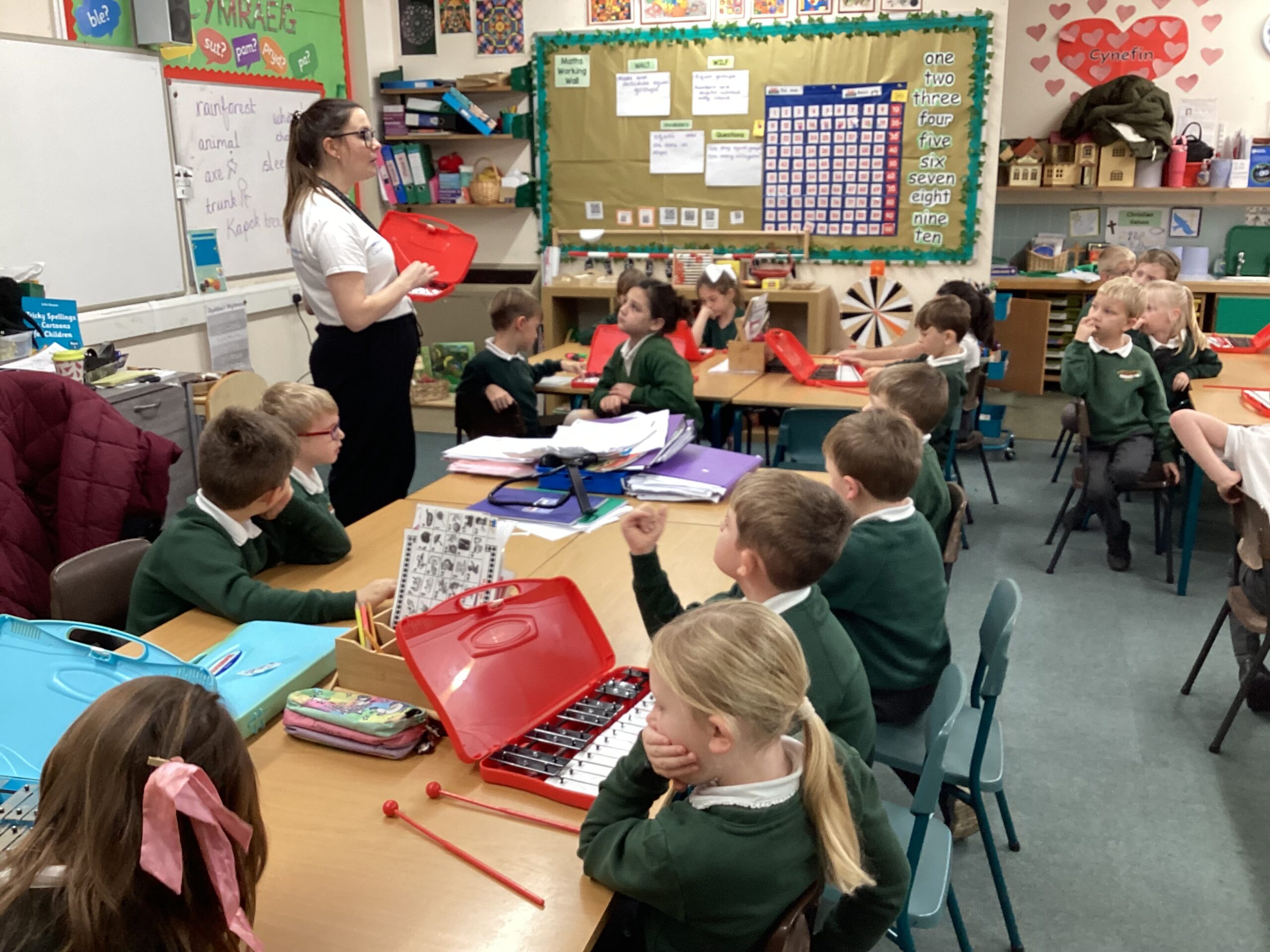 Class 2: First Music Experience Fri, 14th Nov 2025 Katie from Wrexham Music Cooperative came into class and we had a go playing glockenspiels. We had a lot of fun! We played Jingle Bells.