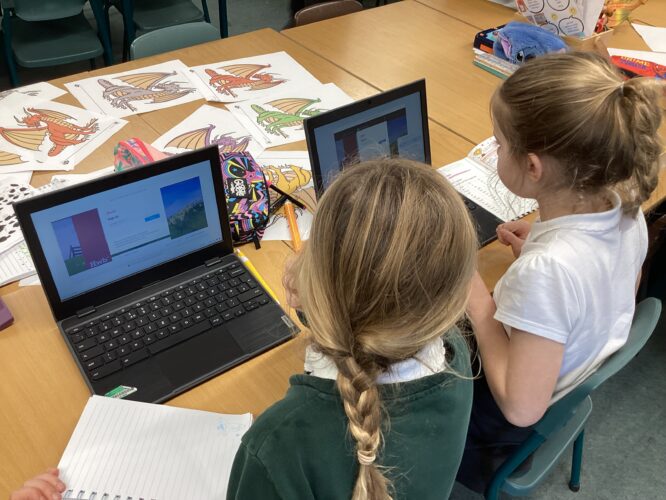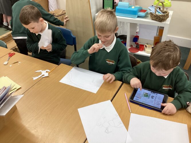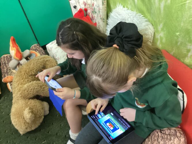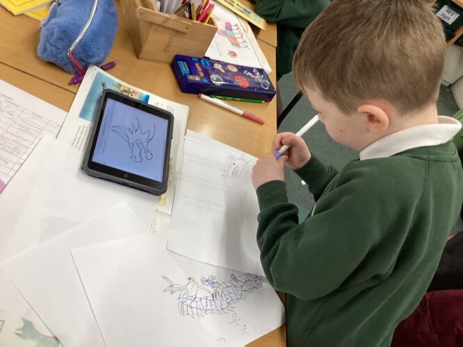 This week we had some super ideas during Independent Learning. We saw children practising logging into Hwb on the chrome books, making maps of Wales, creating dragon faces in the playdo and building dragon lairs in the Block Area. There were children practising their reading and saying words and phrases in Welsh, drawing dragons, and creating a castle and dragon story in the Small World area. I was so impressed with the teamwork and how independent they are. Da iawn!