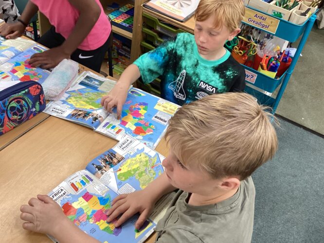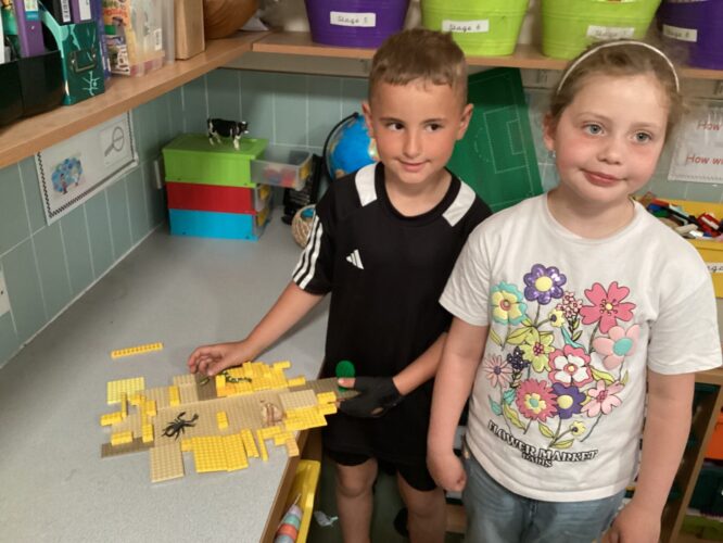 We went on a virtual visit to the Kalahari Desert. We used Google Earth and a video and looked around the desert. We found out a lot of interesting facts! We used the atlases to locate Africa and the different countries where you can find the Kalahari Desert. During independent learning a group chose to build the desert from Lego and another group recreated a desert landscape complete with scorpions and big cats!