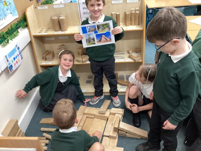 We have been finding out about where chocolate was first consumed. We went on a ‘Five minute adventure’ to Chichen Itza. Then we chose how we wanted to build our own version of an ancient building. Some children chose Kapla blocks, some chose Lego and some chose the Block Area.
