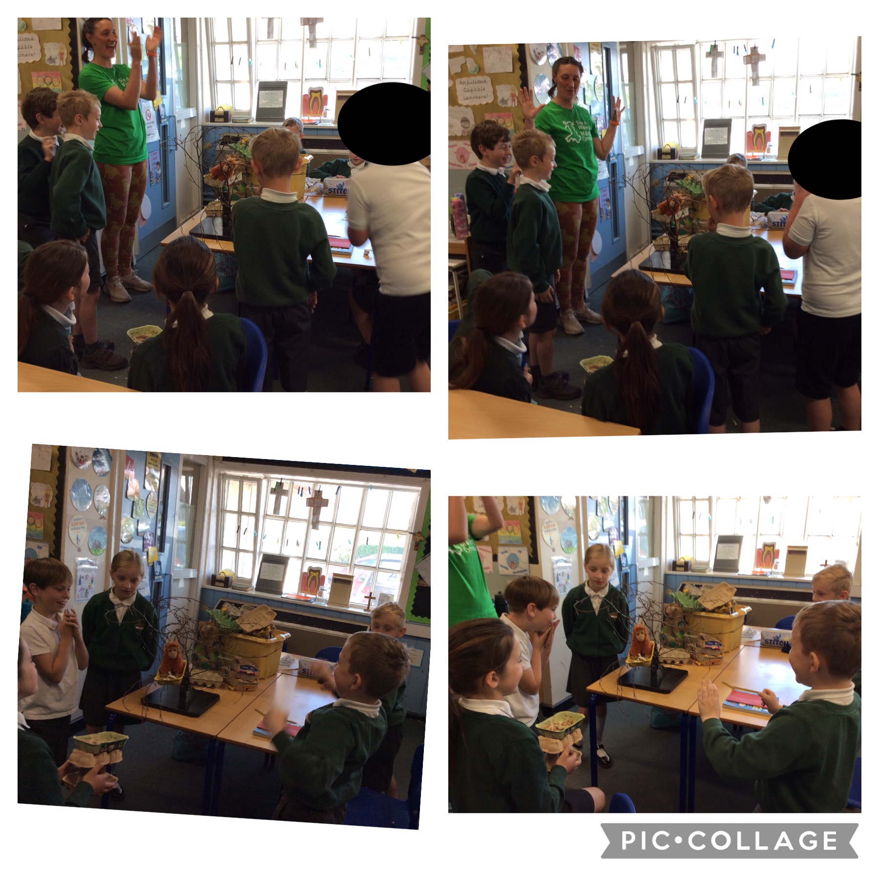 We had such a fun time learning about the rainforests of the world and where they can be found, with Jodie from ‘Size of Wales’. We took part in hands-on activities and discussions to learn about the biodiversity of tropical forests and the lives of the people in them. We created our own map of the world, and placed the rainforest in the correct areas. We played animal games and found out all about the different animals that can be found in the different rainforests. With help from Tim Tom, the orangutan from Indonesia, we travelled to Borneo to find out about the animals that live there. We designed and made our own orangutan nests and tested them. We then found out how much of the rainforests are being cut down to grow palm trees, to create palm oil.  We looked at products that contain palm oil and discussed how unsustainable palm oil is and what action we can take to help. Thank you to Jodie and ‘Size of Wales’ for providing us with such a fun morning of learning.