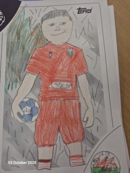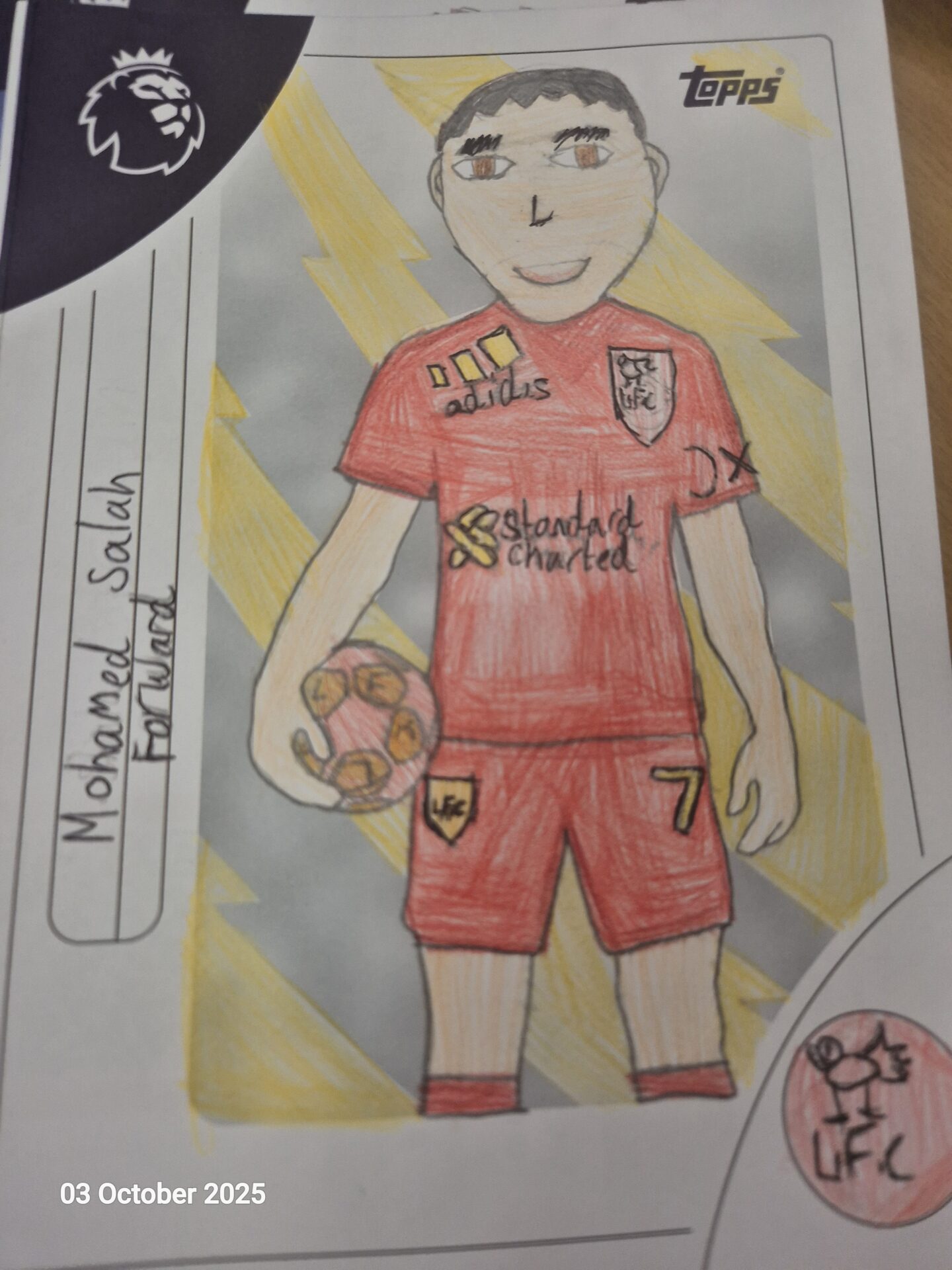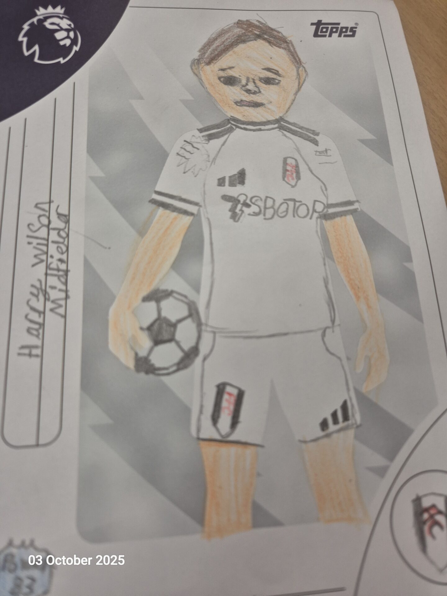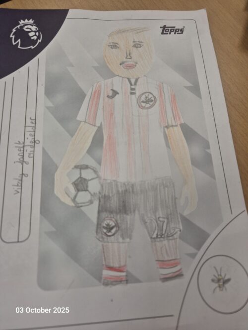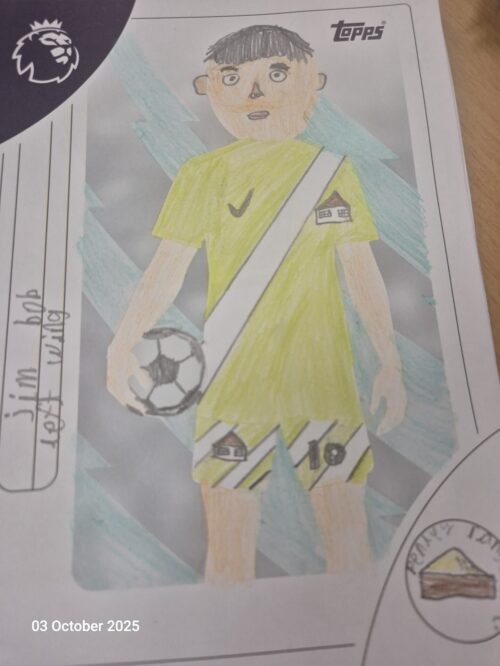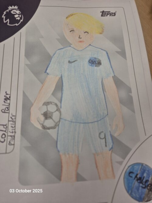 Class 4: A rainy PE Session Tue, 7th Oct 2025 In PE, last Friday, we were unable to go outside as Storm Amy started to descend upon us. Instead, we designed some new football cards for the Premier League. Here are some of the winning entries.