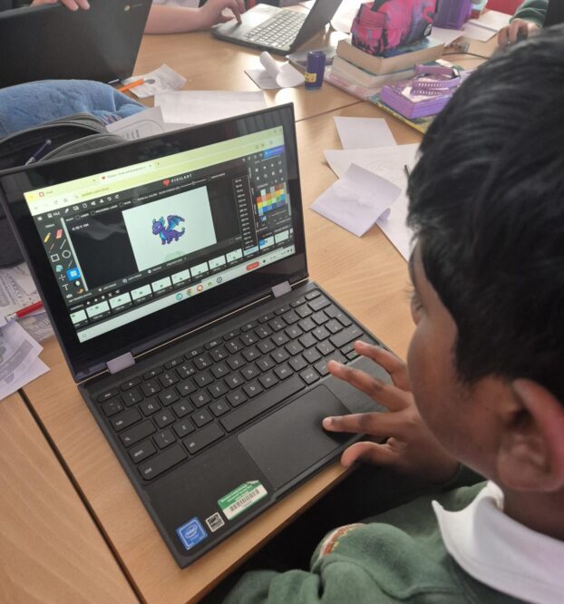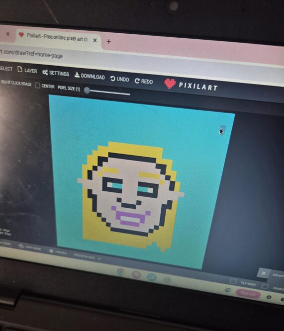 Class 4: PixilArt Sun, 18th May 2025 Today in DCF we used pixilart.com to animate our digital characters. After we completed the Bouncy Ball Challenge – we designed a ball, animated it so it bounces and then we changed them into Gifs to share on our Google Classroom.