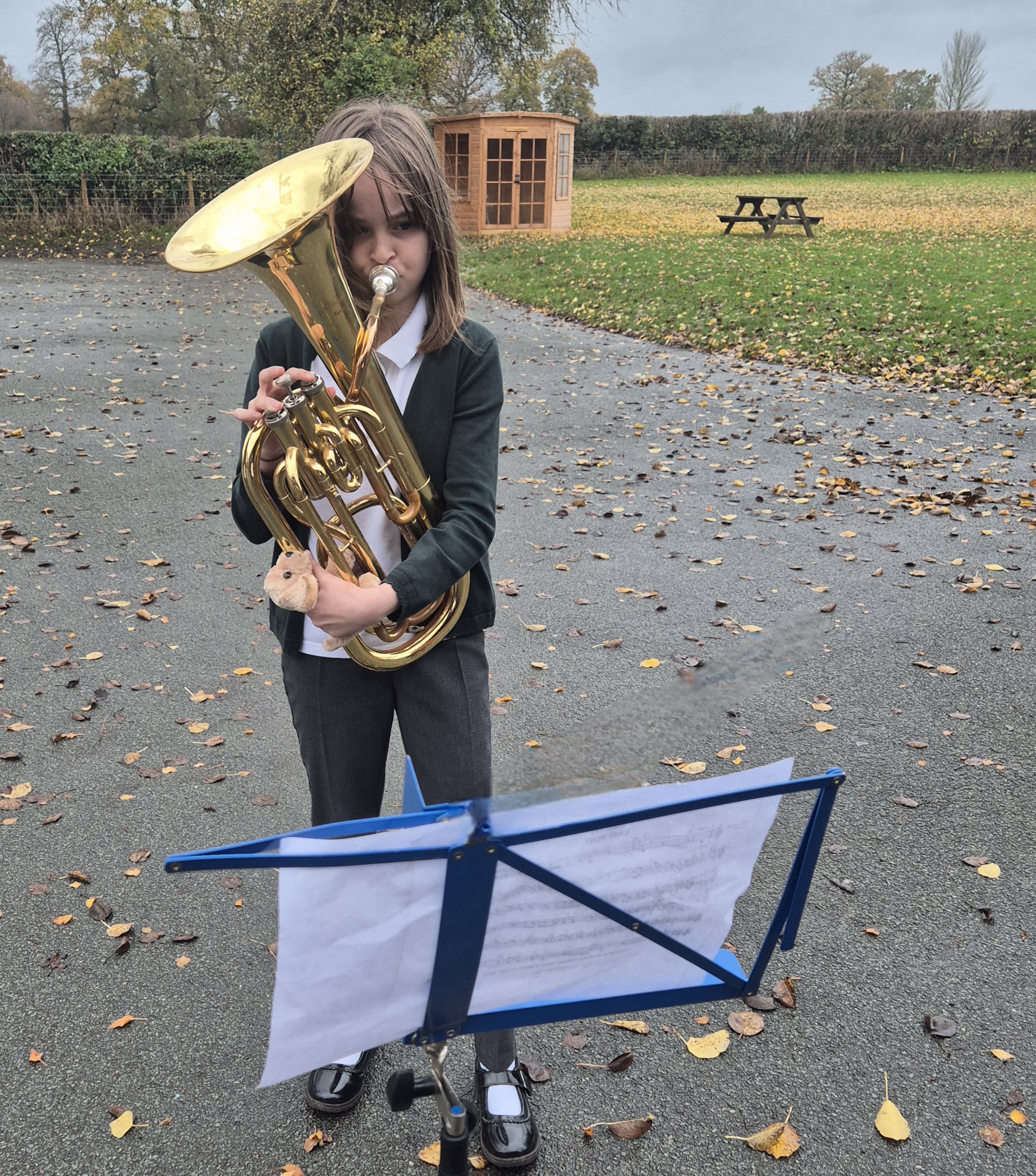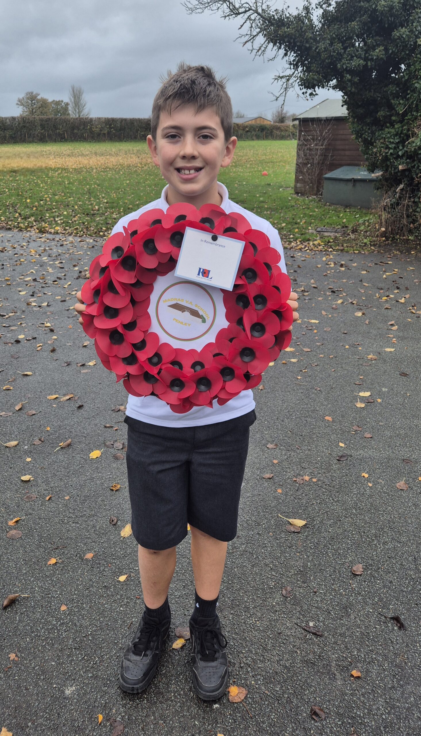 Well done, today, to our oldest boy and girl. The Last Post was played on the Baritone, for the whole school, by our eldest Madras pupil. She played it beautifully. Then our eldest boy was given the responsibility of placing the wreath. Madras remembered.