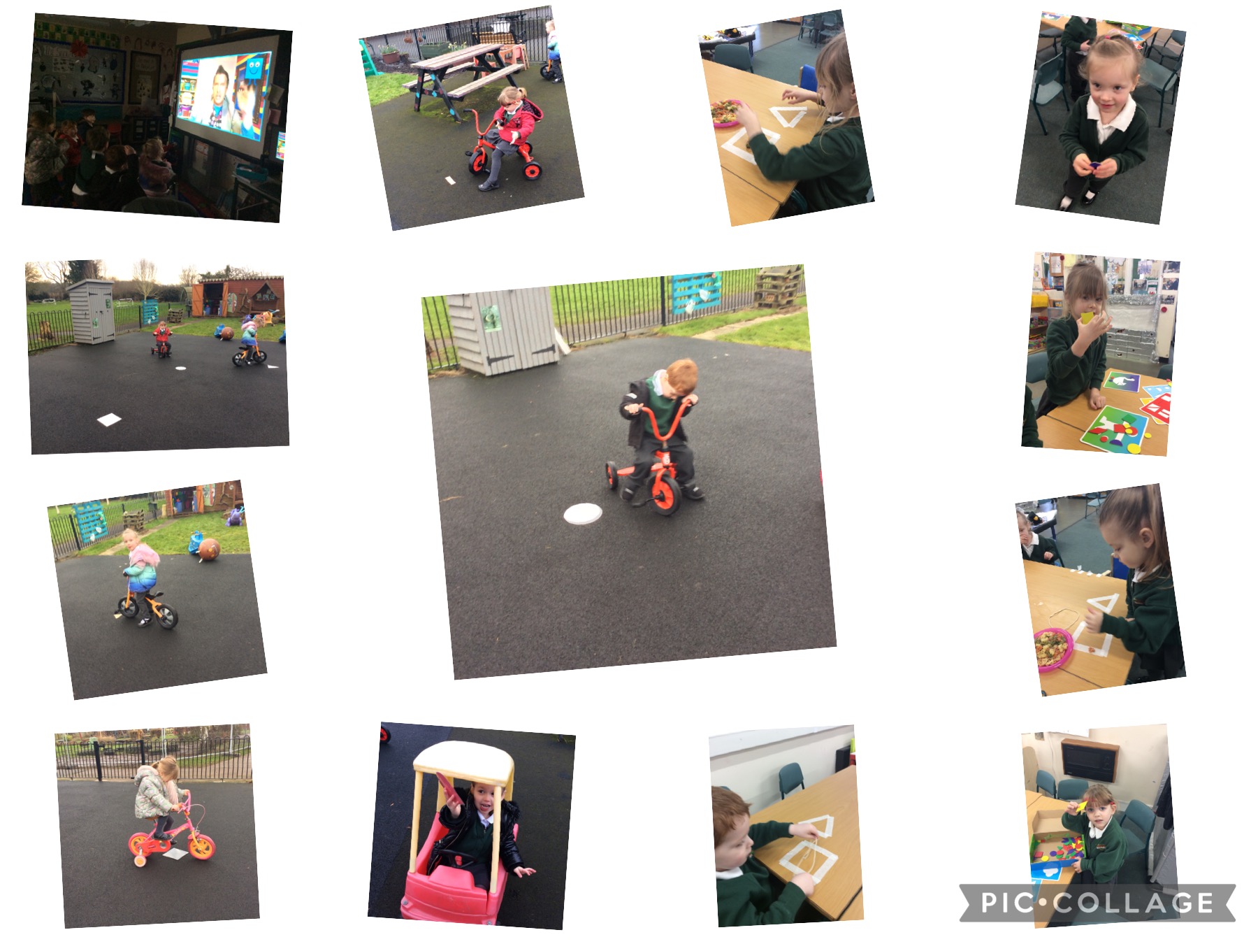 Outdoors we had lots of different shapes and we went on a Shape Hunt on our bikes.