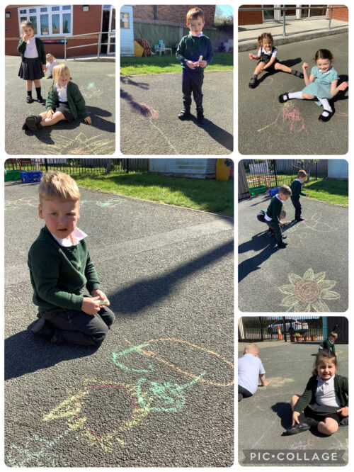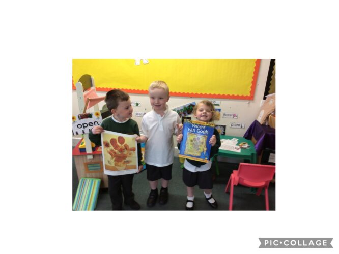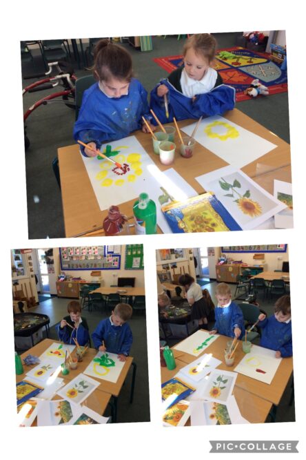 Nursery: Sunflowers Thu, 30th Apr 2026 Nursery: Sunflowers In the autumn term we looked at Starry Night by Vincent van Goch, this term we have been looking at his painting of sunflowers. We painted sunflowers and used chalk to draw big sunflowers on the yard.