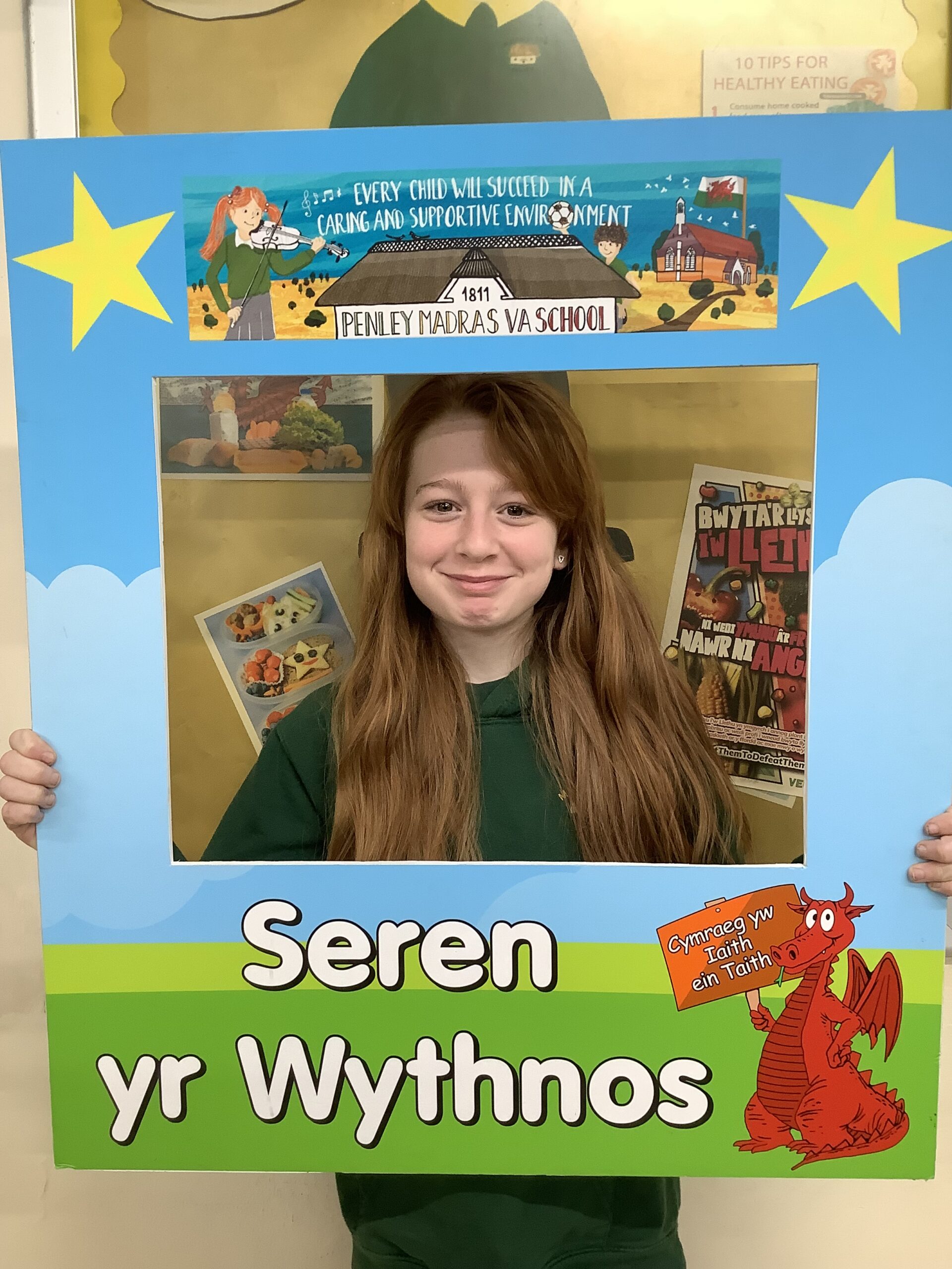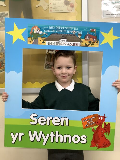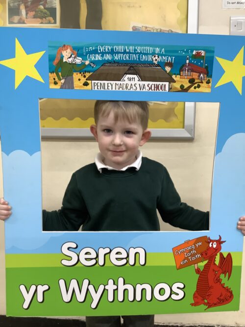 Yn dosbarth 2 for always working hard, always being kind and caring and being a super learning partner.